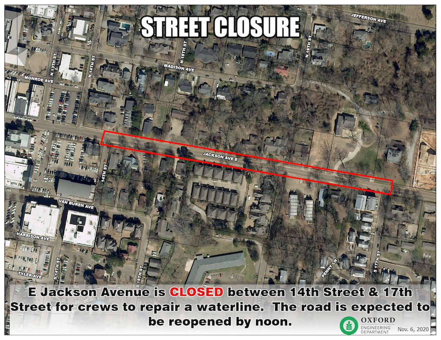East Jackson Closure East Jackson is closed between 14th and 17th Streets today until lunch while crews repair a water main leak. Print Prev Next